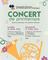 Retrouvez les musiciens de l'Ensemble Musical et Folklorique de Hirsingue à l'occasion des concerts de printemps du: